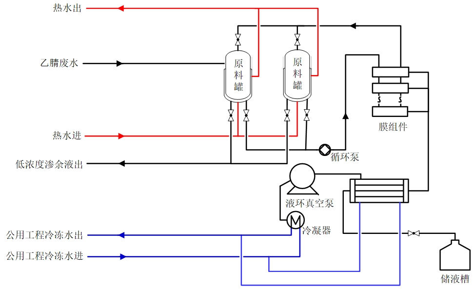 乙腈是多肽生產(chǎn)過程中重要的溶劑,在多肽生產(chǎn)過程中乙腈不可避免地與水混合,乙腈廢水造成乙腈的大量流失。對于這部分乙腈,若不及時控制回收,不僅會對制藥企業(yè)造成巨大的經(jīng)濟損失,也會對接觸者的健康和周圍的環(huán)境造成威脅,因此物料中乙腈的回收治理就顯得十分重要,其回收率的高低及回收能耗對企業(yè)的經(jīng)營成本有著顯著影響。